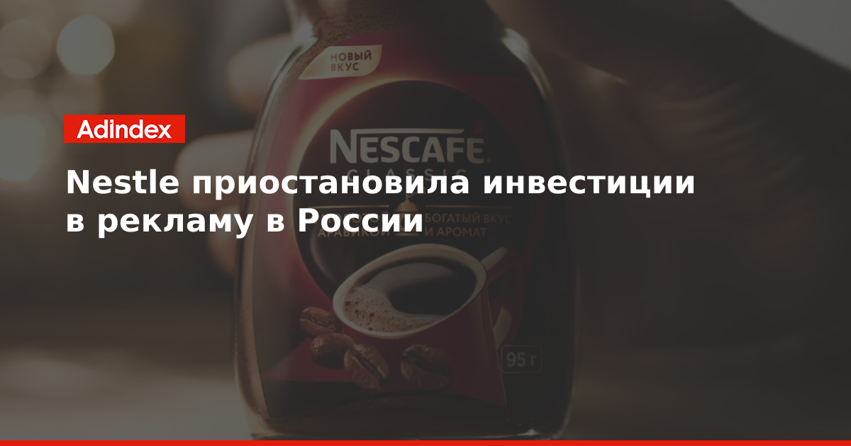 Швейцарский производитель продуктов питания и напитков Nestle приостановиларекламу в России и все капитальные инвестиции, пишет«Интерфакс». При этом предприятия продолжают работать.