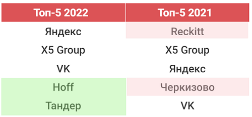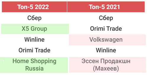 Топ-5 рекламодателей на ТВ* в 2022 г. и ихпозиции в 2021 г.
