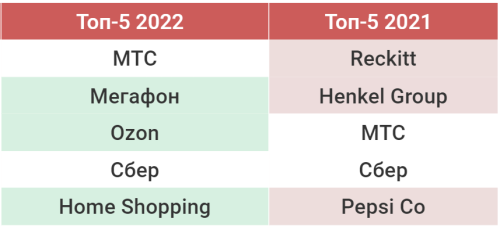 Топ-5 рекламодателей на ТВ в 2021 г. и ихпозиции в 2022 г.
