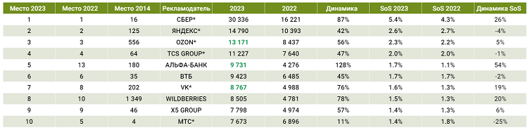 В 2023 году в топ-30 не осталось ни одной зарубежной компании, а наиболееактивными рекламодателями стали экосистемы.