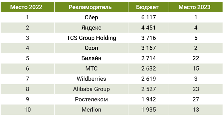 Топ-10 рекламодателей в интернете в 2022 году и их позиции в 2023 году