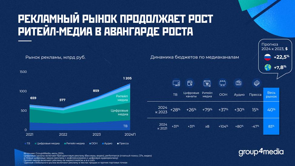 Российский рекламный рынок увеличится на 40% в 2024 году — Group4Media