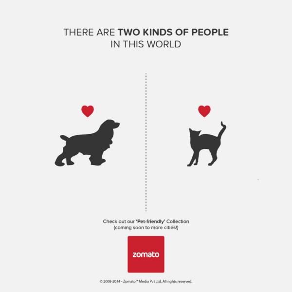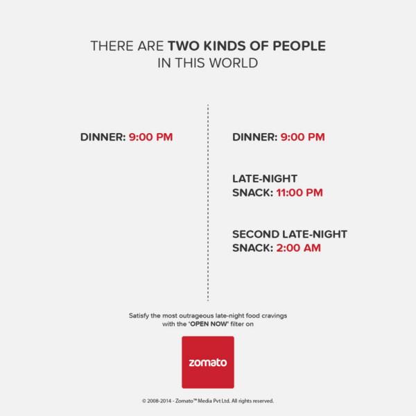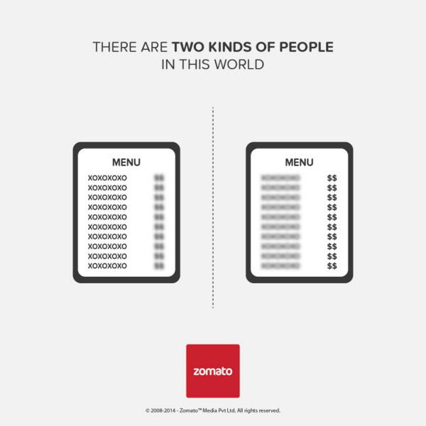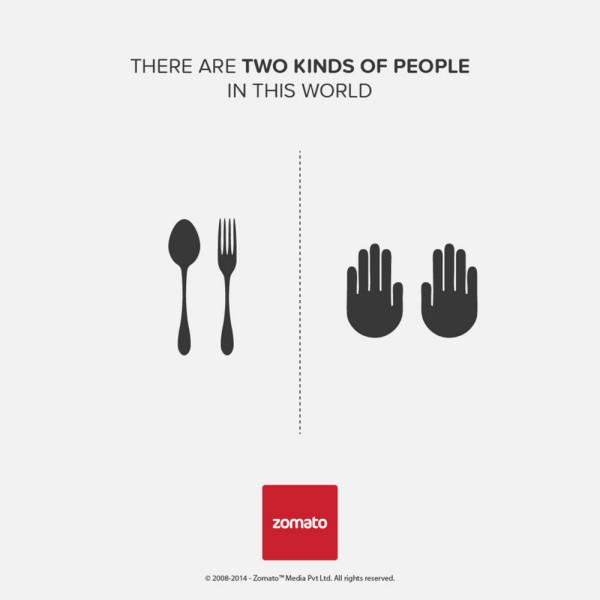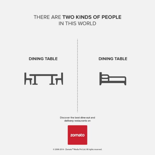 В мире живет огромное количество людей, и у всех разные вкусы. Но Zomato считает, что на самом деле существует только два типа. Чтобы проиллюстрировать это, путеводитель выпустил серию забавных постеров, показывающих разные человеческие привычки.