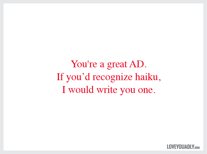 Это реальная любовь, решили Анхела Гранадос и Хоакин Альварес Лимон и создали шутливые валентинки от арт-директоров копирайтерам и наоборот.
