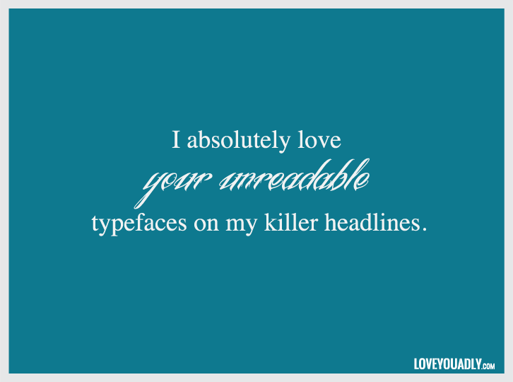 14. Я просто обожаю твои нечитаемые шрифты для моих убийственных