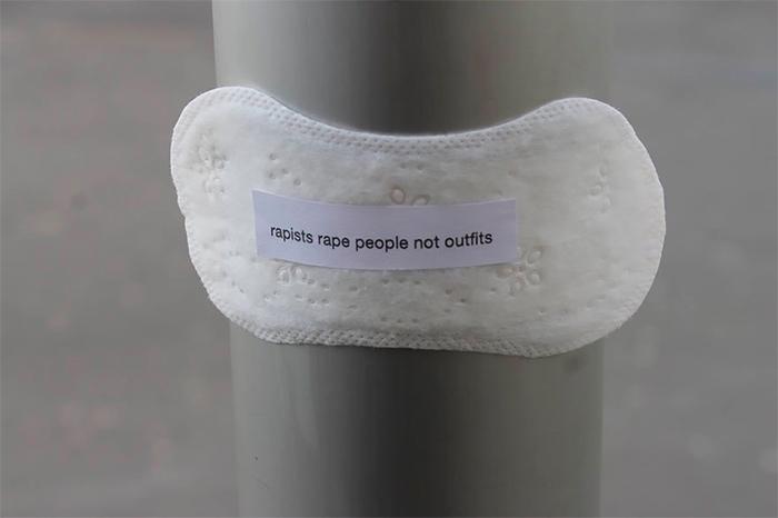 Немецкая феминистка расклеила сообщения на женских прокладках