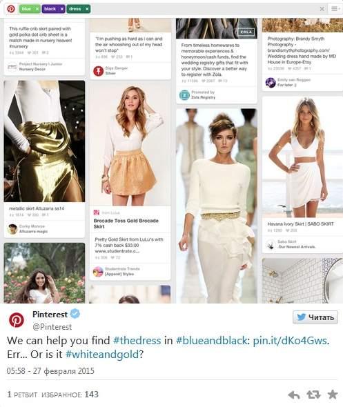 Pinterest в в аккаунте в Twitter напомнил, что этой социальной сетью часто пользуются для поиска и выбора нарядов.