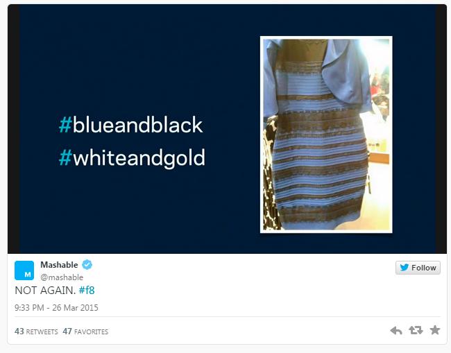 Ну, и, конечно же, знаменитое платье. Официально он черное и синее, но из-за освещения многие люди воспринимают его, как золотое и белое.