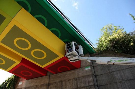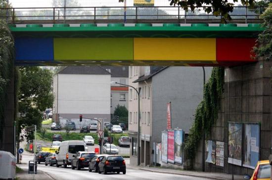 Есть и более смелые нестандартные решения. Однажды Lego забрендировал в Германии один из путепроводов. Мост был окрашен в разноцветные цвета и в итоге превратился в конструкцию, собранную из кирпичиков конструктора Lego.