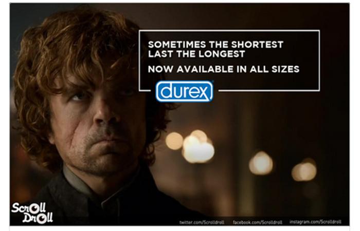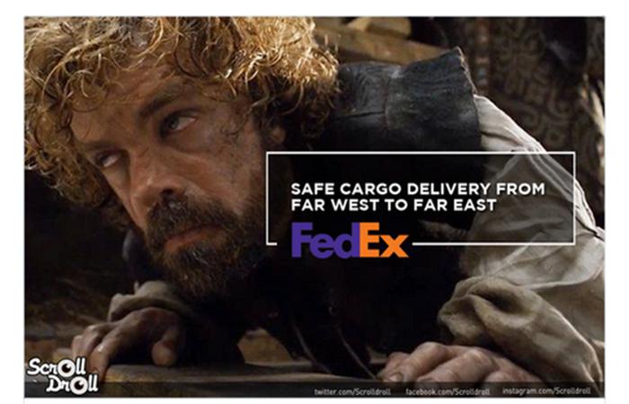 Авторы блога ScrollDoll представили, как бы выглядели рекламные баннеры различных компаний, используй они кадры из «Игры престолов» в качестве основы. В подборку попали презервативы Durex, курьерская служба FedEx и другие товары и услуги