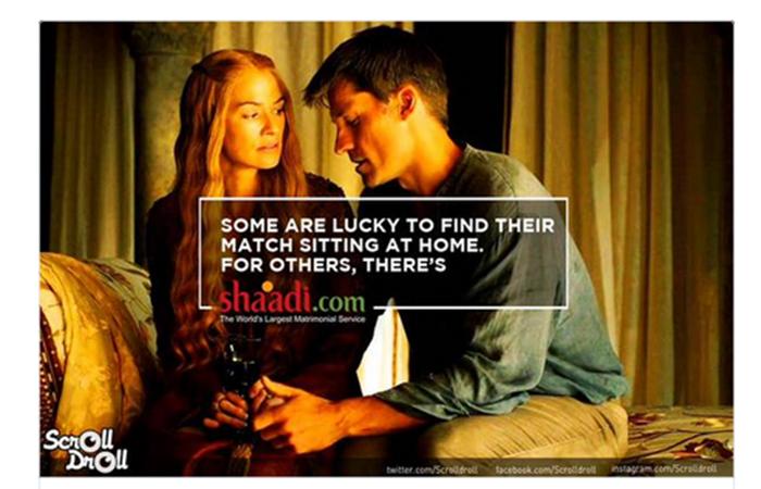 Индийский сайт для поиска супругов Shaadi.com: «Некоторым повезло найти свою вторую половинку, не выходя из дома. Для остальных есть Shaadi.com».