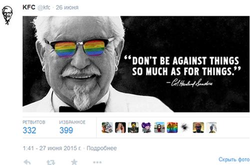 KFC разместила цитату полковника: «Никогда не будьте против настолько, насколько же и за».