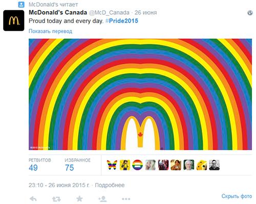Хэштег #LoveWins был моментально выведен в топ, а бренды и компании поддержали гей-сообщество и перекрасили логотипы в радужные цвета. Среди них были adidas, Abercrombie & Fitch, Академия «Оскар», Adobe, Airbnb, Apple, Citi, Coca-Cola и многие другие.