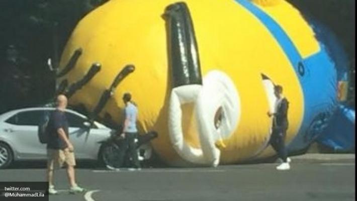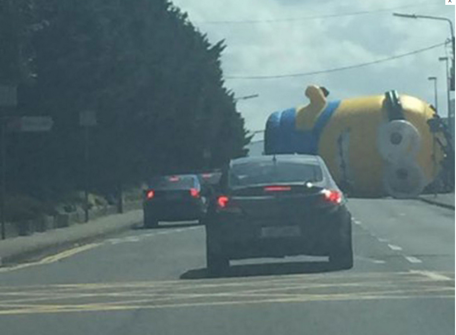Недавно в Ирландии ветром сдуло гигантскую промокуклу, изображающую миньона из мультфильма «Гадкий Я». Упавший 12-метровый миньон приземлился прямо на дорогу и парализовал на 20 минут дорожное движение. В считанные минуты после происшествия на сайте газеты Independent вышла новость с заголовком «Гигантский Миньон терроризирует ирландских водителей» (в оригинале Giant Minion terrorises drivers in Ireland as 40ft inflatable blocks traffic on Dublin road).
