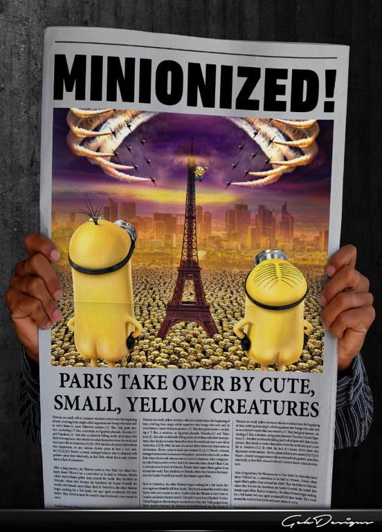 Остроумные коллеги с Designcrowd.com обратили внимание на гипертрофированный заголовок и предложили дизайнерам нарисовать свои версии «миньонов-убийц», атаковавших разные столицы мира. Лучшие работы были опубликованы на сайте.