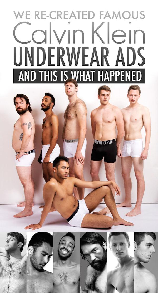 Издание BuzzFeed решило представить, как выглядела бы реклама всемирно известного бренда Calvin Klein, если бы вместо моделей в ней участвовали мужчины, которых мы каждый день встречаем на улицах – худые и толстые, с разным телосложением и внешностью