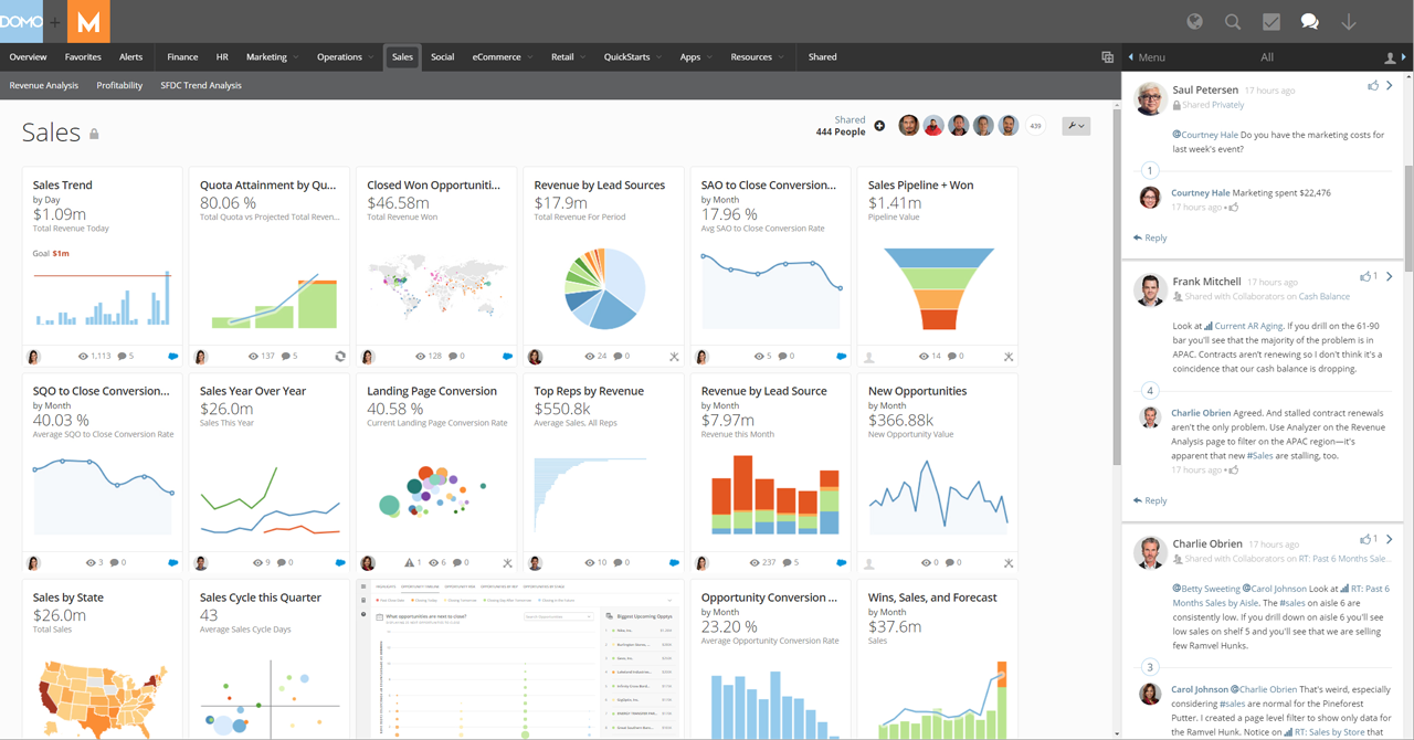Если вы работаете удаленно, иногда бывает невозможно принять совместное решение, поскольку трудно постоянно находиться на связи с партнерами. Но набор приложений Domo не только предоставляет релевантную информацию, необходимую для принятия решений, но еще и открывает доступ для всех участников рабочего процесса к облачной платформе. А это, в свою очередь, облегчает взаимосвязь между ними.