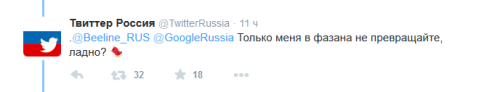 «Твиттер Россия», в свою очередь, попросил увлеченных диалогом представителей брендов не превращать его в фазана.