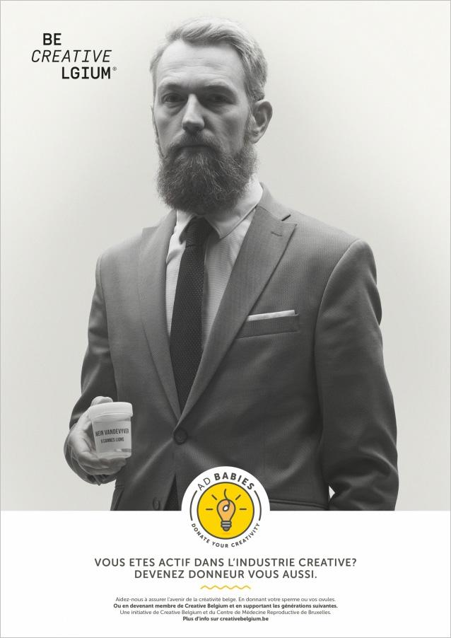 Чтобы решить эту проблему, Creative Belgium запустила рекламную кампанию, предложив прославленным рекламистам поделиться своими сперматозоидами и яйцеклетками, чтобы сохранить креативную способность нации. Приглашение стать участниками акции получили такие известные креативщики, как Джоффри Хантсон (Geoffrey Huntson), обладатель 33 «львов», Диттер де Риддер (Dieter De Ridder), у которого 10 «львов», Наим Баддих (Naïm Baddich) и другие. Биологический материал доступен в больнице Йетте для всех желающих.