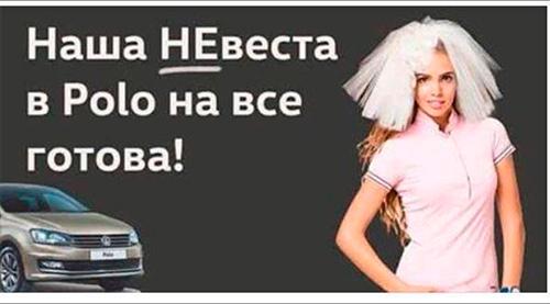 Другие компании-конкуренты тоже в долгу не остались. Следующий креатив последовал от дилеров компании Volkswagen: «Наша НЕвеста в Polo на все готова!». А вот вариант и от Peugeot: «Тили-тили тесто. И Partner и НЕвеста». И от компании Nissan: «Посмотри по сторонам, и выбирай НЕвесту сам». А представители Audi и Nissan решили вспомнить и про женихов.