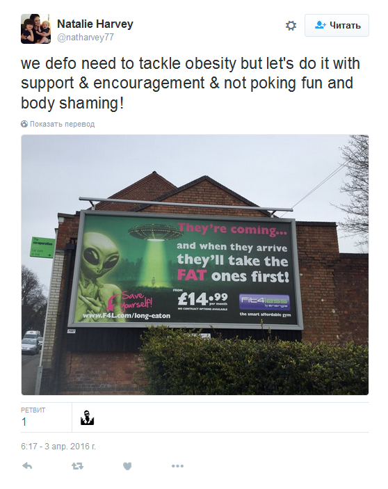 Такое обращение возмутило жителей английского графства Дербишир, где располагается зал. Внимание на рекламу обратила активистка движения против издевательств над людьми Натали Харви. Она увидела в сообщении компании признаки глумления над тучными людьми. По словам Натали, за одну неделю она наблюдала три случая притеснения людей из-за их лишнего веса.