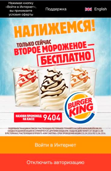 Следом Burger King запустил провокационную рекламу мороженого. При подключении к бесплатному Wi-Fi в московском метро появлялся неоднозначный баннер со слоганом «Налижемся!».