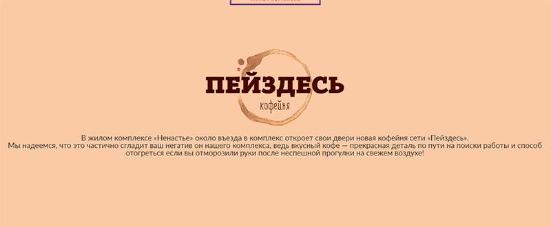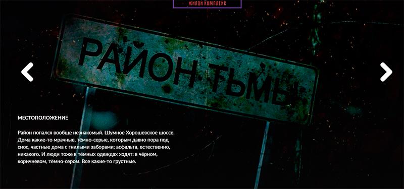 В сети появился сайт, который рассказывает о якобы новом жилом комплексе в Москве, получившим не слишком привлекательное название – «Ненастье». Жить в нем, как утверждают авторы проекта, - как ездить на велосипеде. «И ты горишь. И все горит. И ты в аду»