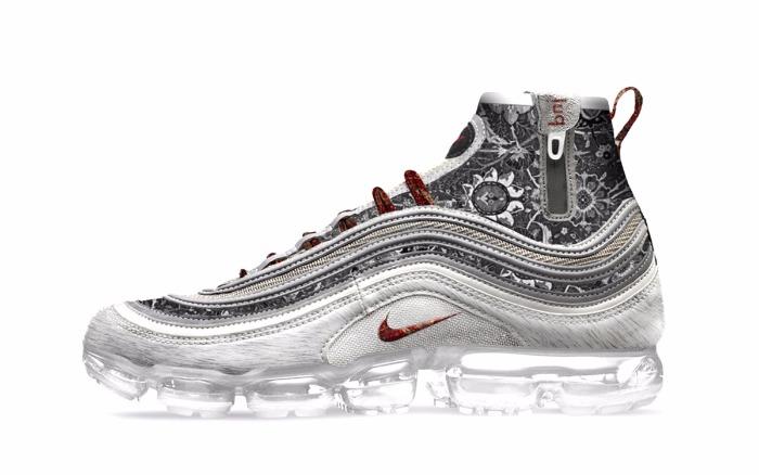 Вариант Лебедева выполнен для Air Max 97 с темным верхом и закрывающей шнуровку молнией.