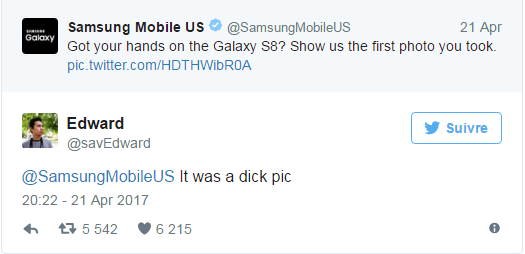 Около месяца назад Samsung Mobile US в своем аккаунте Twitter предложил пользователям рассказать, как выглядело первое фото, сделанное с помощью Galaxy S8, рассказывает Creapills. Бренды уже привыкли, что на их страницы часто заходят тролли, и обычно не обращают на это особого внимания.