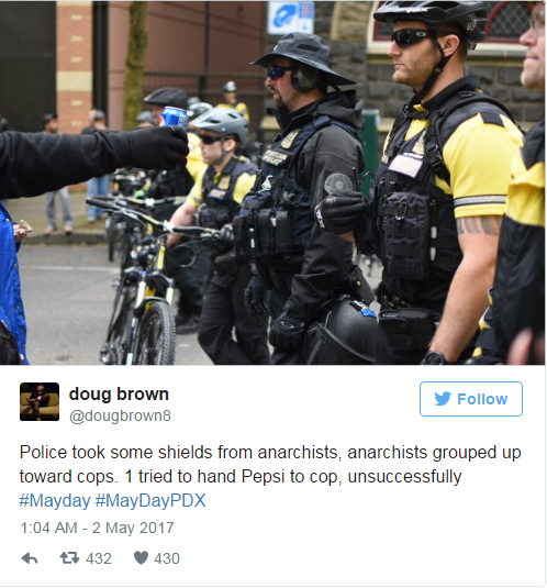 Первомайская демонстрация в американском Портленде была разогнана после того как в полицейских полетели банки Pepsi
