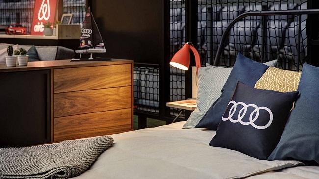 Как видно на фото, вся обстановка брендирована логотипами Airbnb и Audi.