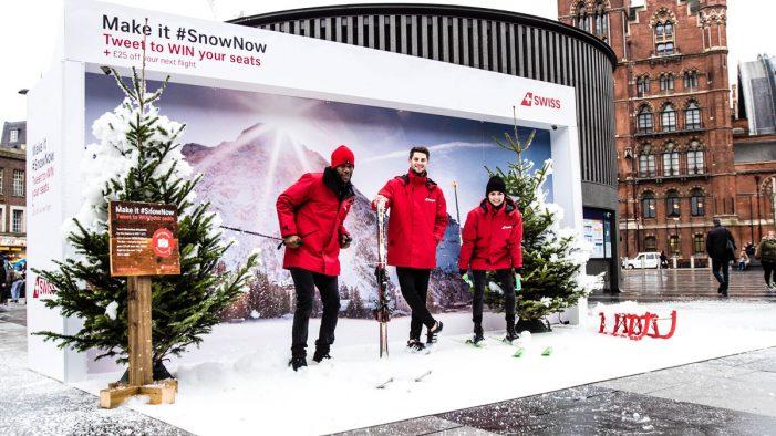 Swiss Airlines установили в Лондоне билборд, способный устраивать снегопад