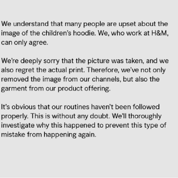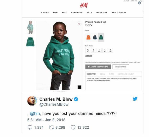 Канадский певец The Weeknd разорвал все отношения со шведским брендом H&M после публикации рекламы толстовок, в которой многие пользователи усмотрели расизм, сообщает The Drum. Одно из изображений действительно выглядит спорным - на толстовке, в которую облачен темнокожий мальчик, значится «Самая крутая обезьянка в джунглях». Заодно досталось и другим рекламным картинкам, хотя они сделаны с белыми детишками: так, надпись «Эксперт по выживанию в мангровых джунглях» тоже была признана неуместной.