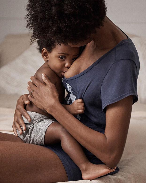 На фото изображена темнокожая модель Адаора Акубило из Нигерии, кормящая грудью своего 20-месячного сына Аринзе. Пользователям понравилось все — и удобство одежды, и возраст ребенка (сейчас считается, что кормить грудью нужно как можно дольше). При этом тема кормления грудью на глазах у всех до сих пор не получила в обществе однозначной оценки, и поклонники Gap оценили, что бренд решился поднять этот вопрос.