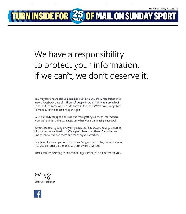 Цукерберг извинился за скандал через рекламу в прессе