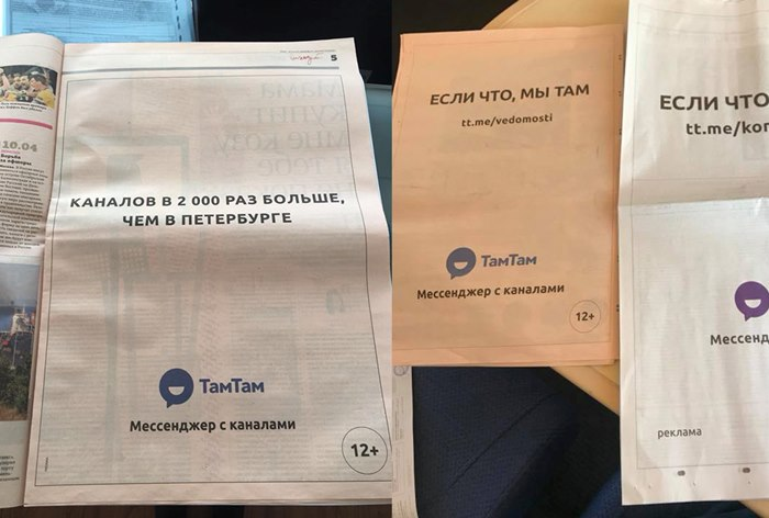 Мессенджер TamTam разместил рекламу в печатных деловых СМИ в день блокировки Telegram
