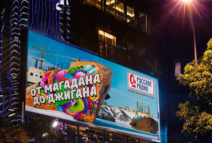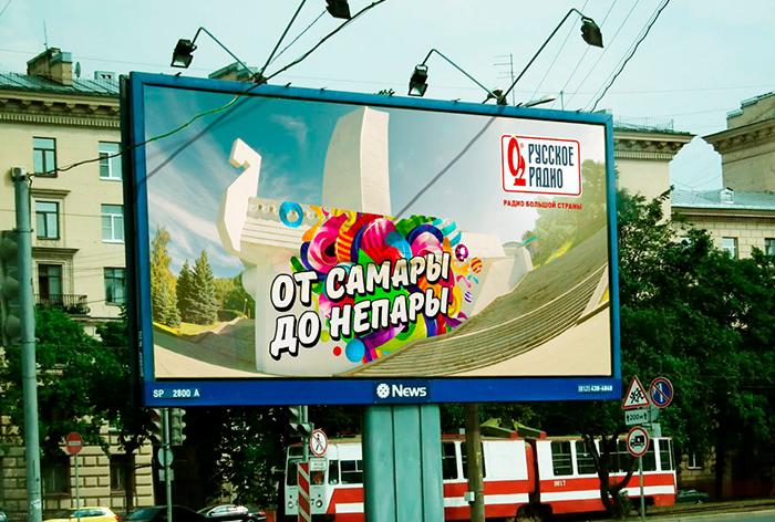 «Русское радио» совместно с агентством Great запустило рекламную кампанию «Радио большой страны», сообщается в пресс-релизе компании. Центральной идеей стал масштаб вещания станции, ставку сделали на рифмы названий российских городов с именами популярных исполнителей. Новые слоганы радиостанция создавала вместе со слушателями, которые приняли участие в рифм-баттле с призами.