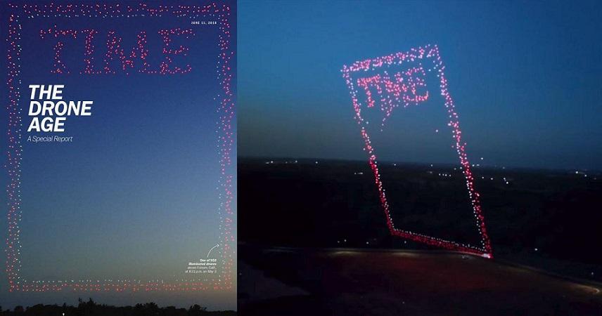 Для того чтобы воссоздать обложку «Time», было задействовано 958 летательных аппаратов с подсветкой, которые образовали в воздухе изображение с названием журнала и его характерным контуром. Все это было заснято другим беспилотником, используемым обычно в кинематографе.
