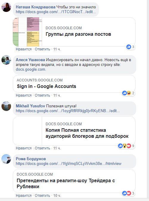 На данный момент «Яндекс» уже закрыл индексацию, однако пользователи Facebook уже выложили ссылки на многие приватные документы в своих аккаунтах. Так, можно найти ссылки на базы данных по конференциям, логины и пароли к почтовым ящикам, доступы к электронным кошелькам, бюджеты по SMM, статистику по блогерам и многое другое.