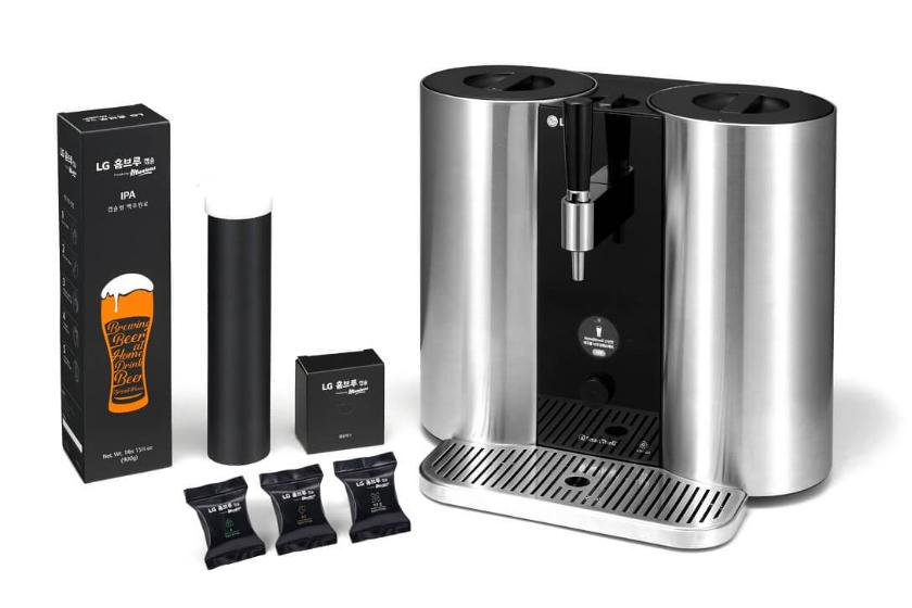 Домашняя пивомашина LG LG Electronics представила анонсированную в декабре капсульную машину HomeBrew, позволяющую варить крафтовое пиво прямо у себя дома. Устройство готовит пять сортов пива: американское IPA, американский Pale Ale, английский Stout, бельгийское Witbier и чешское Pilsner.