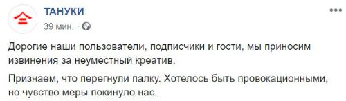 «Тануки» извинилась за «неуместный креатив»