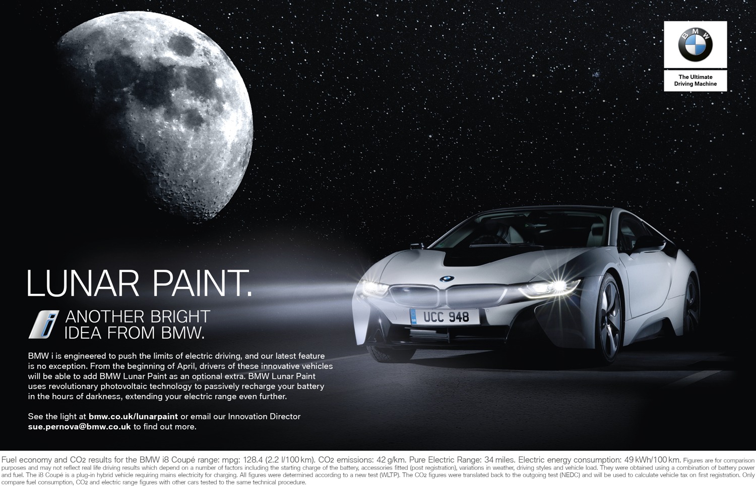 BMW редставила свою уникальную инновацию Lunar Paint. Как пишет издание The Drum, благодаря технологии водители смогут использовать энергию Луны и заряжать аккумулятор в темное время суток.