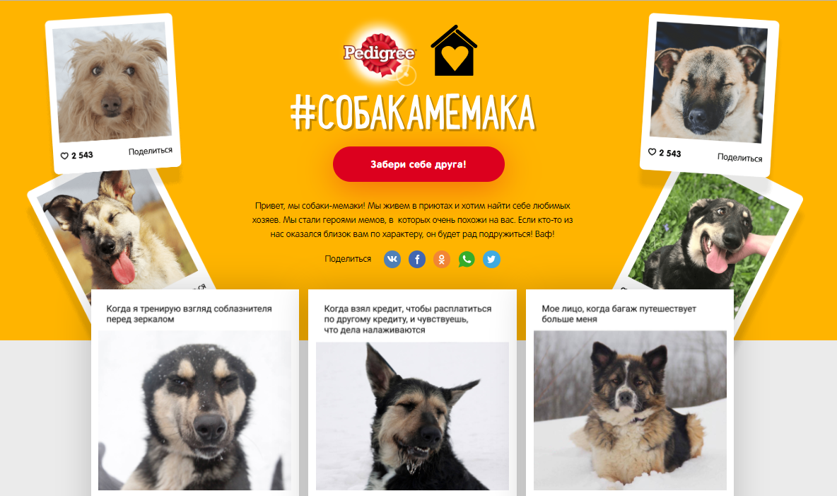 Digital-проект «Собака-мемака» от Pedigree помогает найти семью для бездомных животных