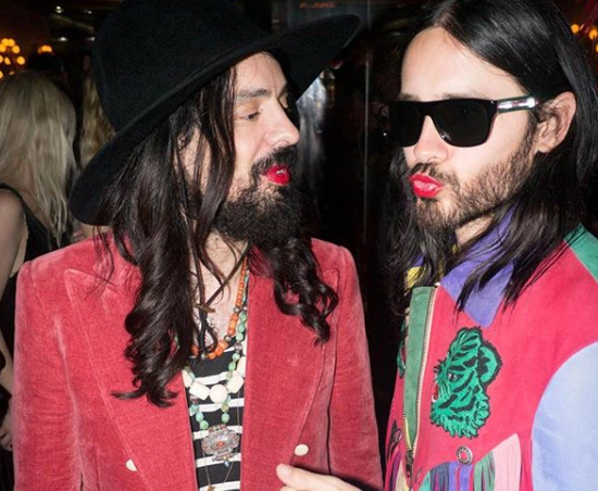 На некоторых снимках этой кампании моделей вообще нет: это просто фото с едой и отпечатками губной помады на стаканах и чашках. А на вечеринке Gucci, посвященной выходу этого продукта, помаду рекламировали даже мужчины — креативный директор компании Алессандро Микеле и певец Джаред Лето.