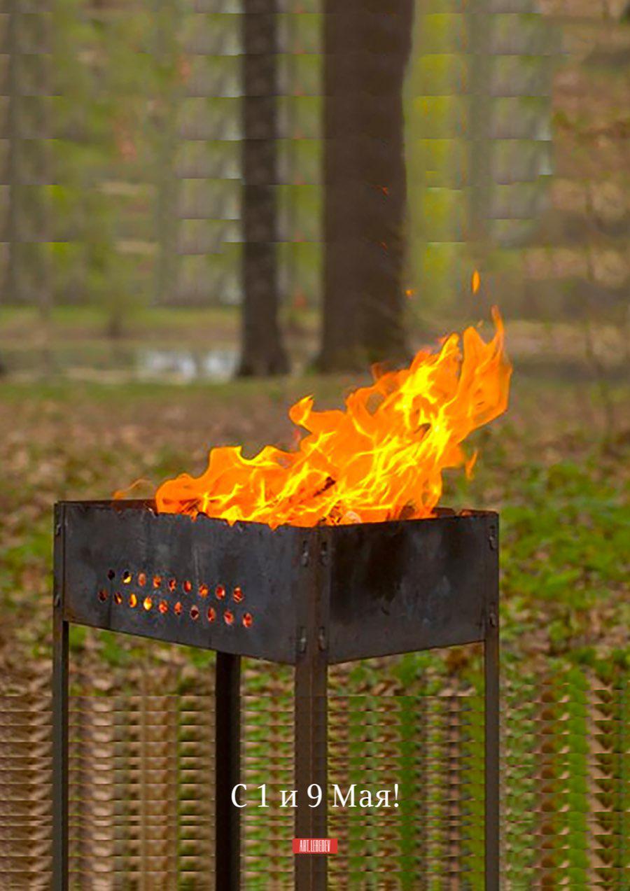 Студия Артемия Лебедева выпустила плакат, который объединяет сразу два праздника — 1 и 9 мая.