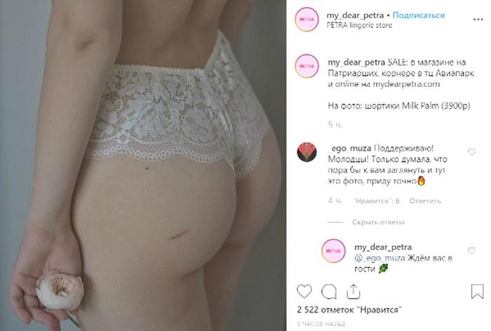 Компания My Dear Petra выложила в Instagram снимок модели без фотошопа. На бедрах у девушки видны растяжки, родинка и царапина. Пояснений и мотивационных подписей к посту не прилагалось, бренд только призвал покупателей посетить фирменный магазин в торговом центре.