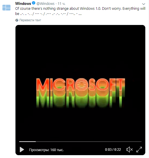 Компания Microsoft разместила в своем официальном аккаунте в Twitter странный пост — с анонсом старой версии Windows 1.0.