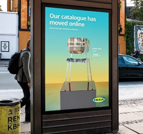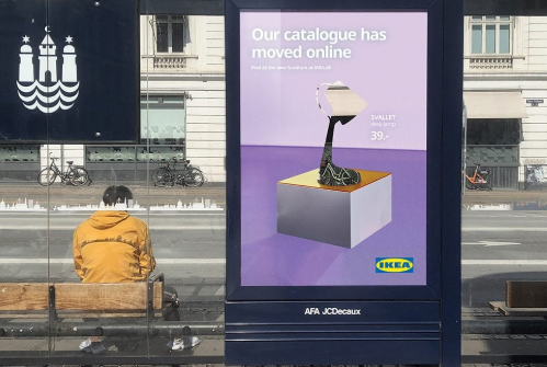 И чтобы рассказать датчанам об этом нововведении, была запущена специальная кампания. На автобусных остановках датских городов появились рекламные щиты с «исчезнувшими» товарами IKEA (от которых оставили только силуэт, а основу сделали прозрачной). А искать их предлагалось на сайте компании, в разделе «Электронный каталог».