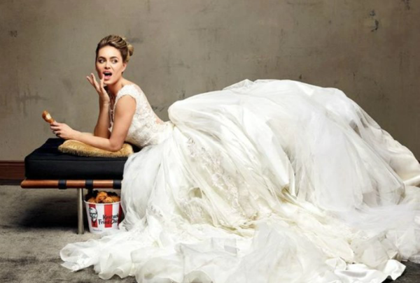 Рекламное объявление появилось в журнале Vogue. На фотографиях модель одета в белое свадебное платье, а в руках у нее ведро KFC. Поучаствовать в конкурсе и получить свадебное оформление от KFC смогут все желающие. Для этого необходимо заполнить заявку на сайте сети фастфуда. Победители получат тематическое оформление, фотосессию в стиле KFC, индивидуальные ведра и музыкальное сопровождение. Издание The Canberra Times оценило свадебный пакет от сети ресторанов в $35 тыс.
