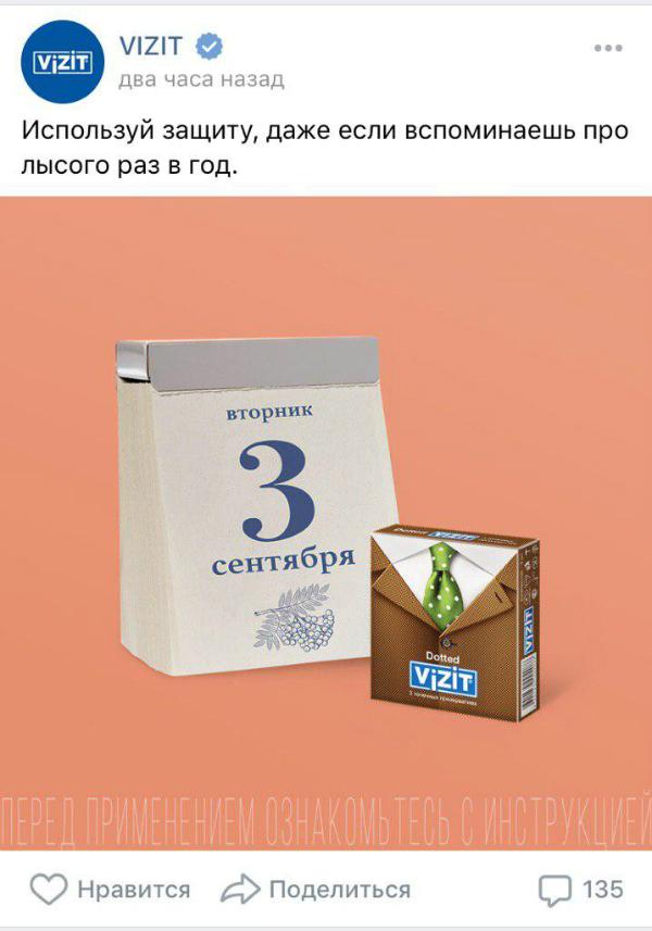 «Используй защиту, даже если вспоминаешь про лысого раз в год», — говорится в посте.